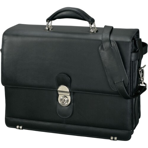Jüscha Alassio Aktentasche MONZA aus schwarzem Leder mit abnehmbarem Schultergurt und Dreistufen-Schloss 47127