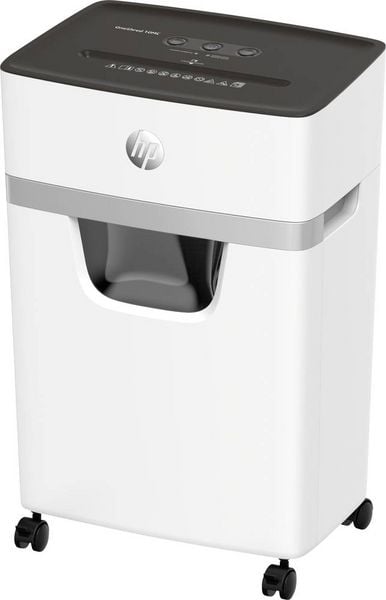 HP OneShred 10MC Aktenvernichter 10 Blatt Partikelschnitt 2 x 15 mm P-5 20 l Vernichtet auch Büroklammern, Kreditkarte, Heftklammern