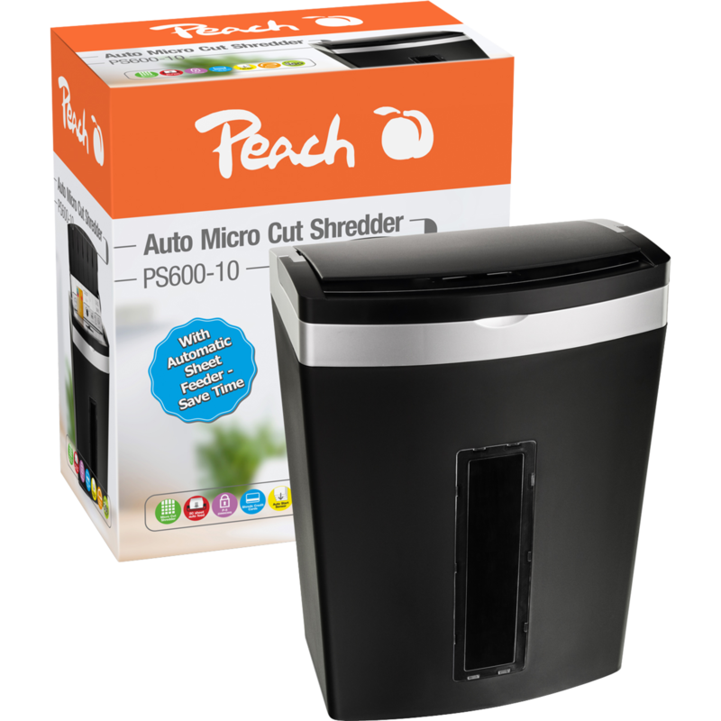 Peach Auto Micro Cut Schredder PS600-10 Aktenvernichter, schwarz/silber