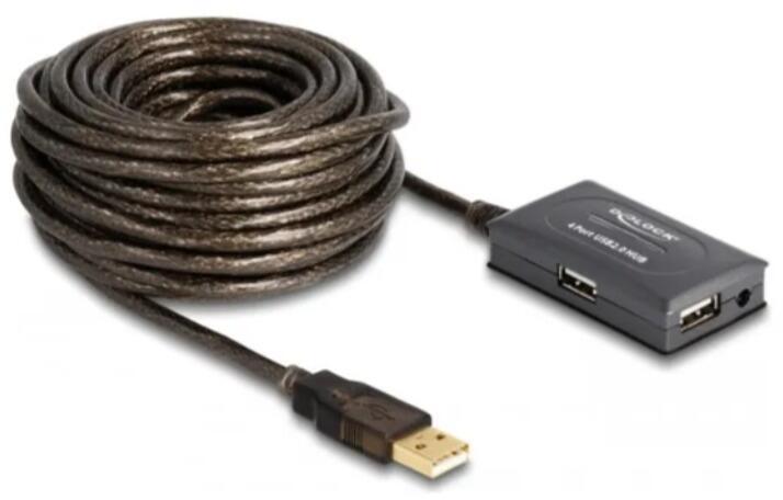 Delock USB 2.0 Verlängerungskabel 10 m aktiv mit 4 Port Hub, schwarz (82748)