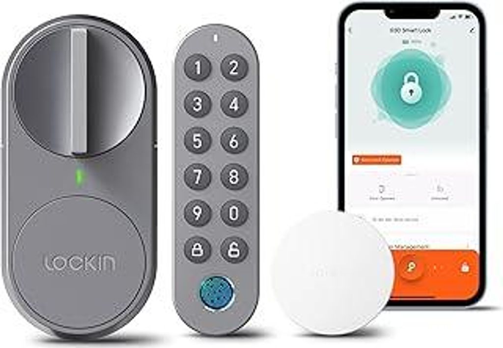 Lockin Smartes Türschloss G30, WLAN & App-Steuerung, Auto-Lock, Alexa- & Google-kompatibel, keyless Entry elektronisches türschloss, Grau