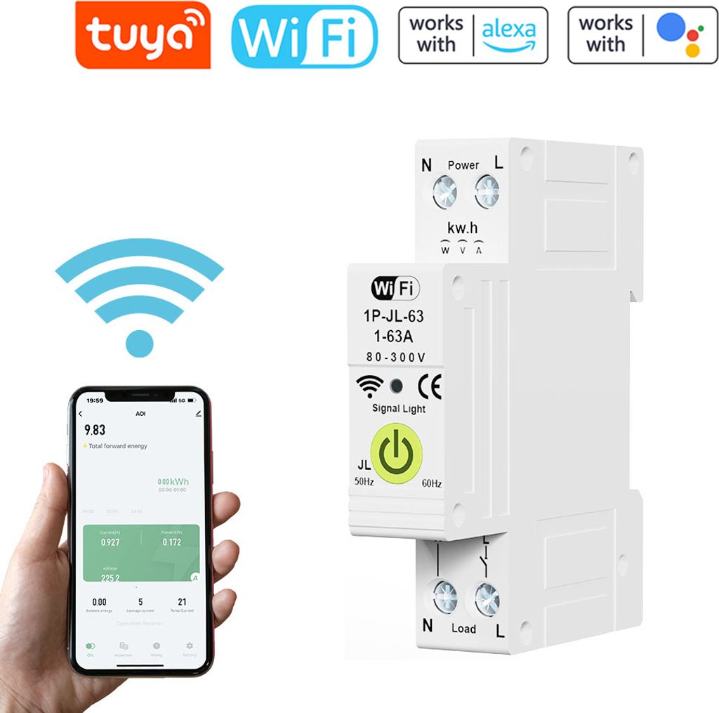 Tuya WLAN Intelligenter Leistungsschalter mit Stromzähler, Zeitsteuerung & Auto-Reclosing – Sprachsteuerung via Alexa & Google Assistant