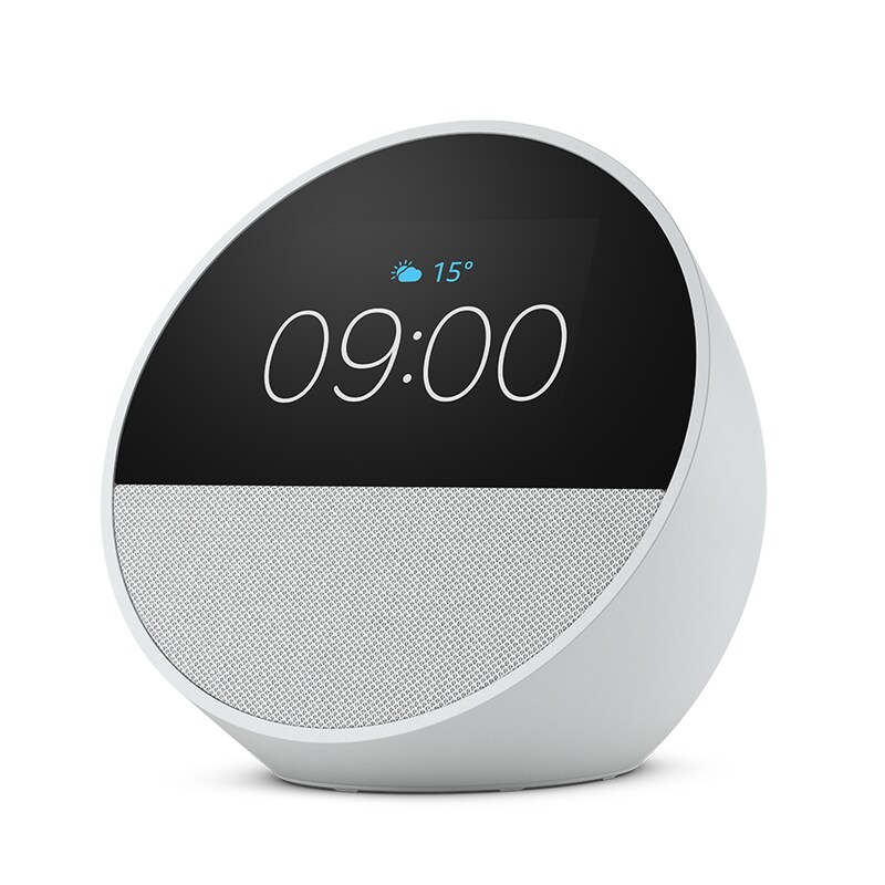 Amazon Echo Spot (2024) Smart Clock mit sattem Klang und Alexa weiß