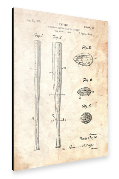 Alu-Dibond "Baseballschläger Patent (Antik)" 30x20 cm artboxONE