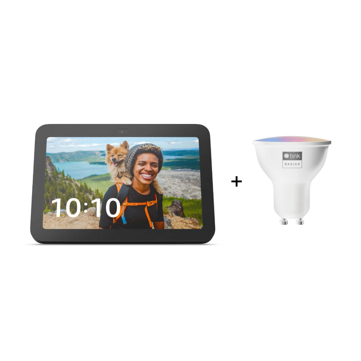 Amazon Starter Set - mit Echo Show 8 (Neueste Gen.) + tink Basics Matter White & Color GU10 Bulb