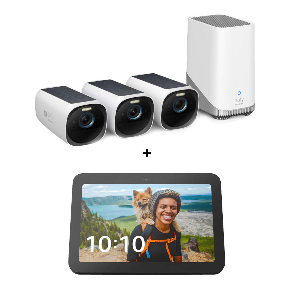 eufyCam 3 Starter-Set 3+1 - 3er-Kameraset mit HomeBase 3 + Amazon Echo Show 8 - 2023