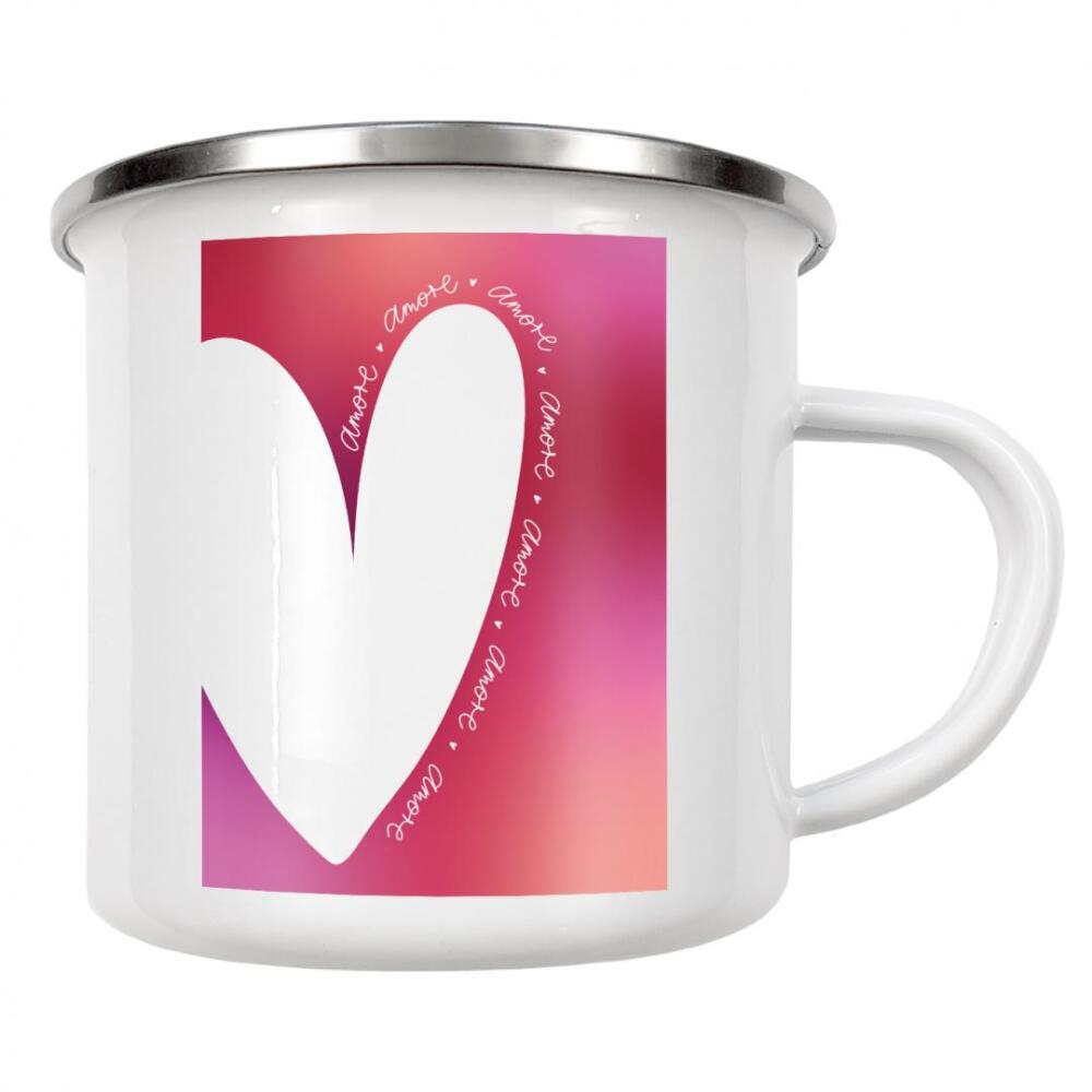 Emaille Tasse "Amore amore amore" artboxONE - Typografie,Liebe - Amore,Liebe,Herz,Lettering,Handlettering,Italien,Blurred,Love,Quote,Spruch
