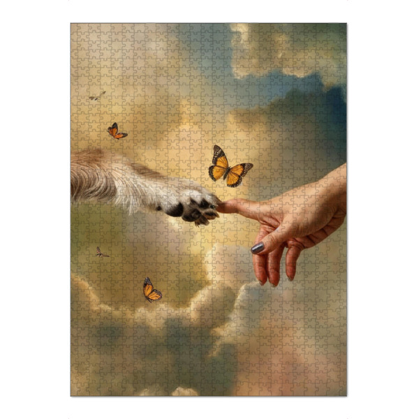Puzzle Ravensburger "Love Dog" artboxONE - Tiere - Paródia,Animal,Bicho de estimação,Cachorro,Surrealismo,Borboleta,Sentimentos,Amor - Bild paródia
