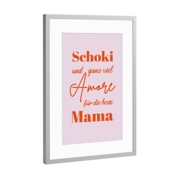 Poster mit Rahmen Silber "Schoki Amore Mama - Geschenk" artboxONE - Typografie,Weihnachten