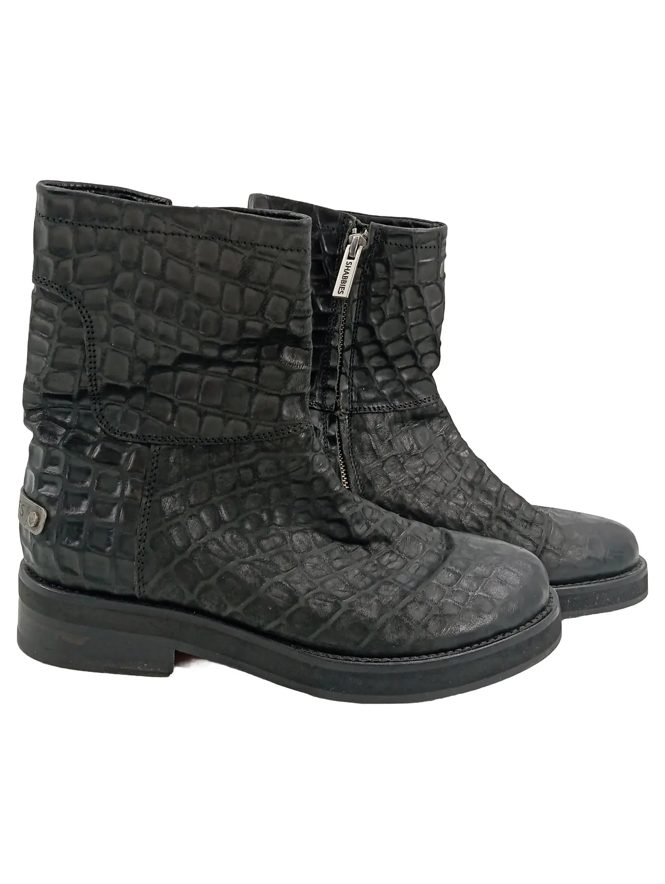 SHABBIES AMSTERDAM Damen Stiefelette Gr. 37 Schwarz Kroko-Optik