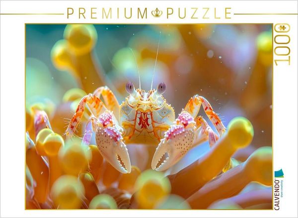 CALVENDO Puzzle Porzellankrabbe in einer Anemone | 1000 Teile Lege-Größe 64x48cm Foto-Puzzle für glückliche Stunden