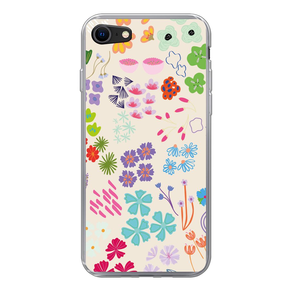 MuchoWow Handyhülle Schutzhülle Hülle für iPhone SE 2022 Blume - Muster - Anemone Silikon Softcase Handy Hülle - Schutzhülle