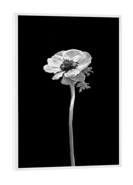 Poster mit weißem Rahmen "Kronen-Anemone | dunkles Design" artboxONE - Floral,Schwarzweiß