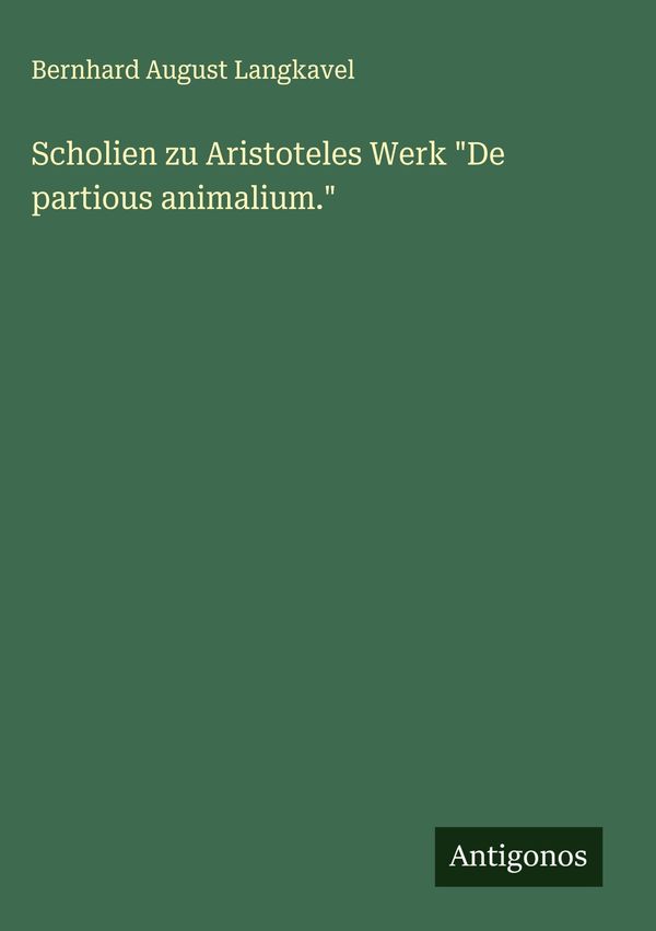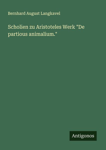 Scholien zu Aristoteles Werk 'De partious animalium.'; Taschenbuch von Bernhard August Langkavel, Antigonos Verlag, 9783386167840