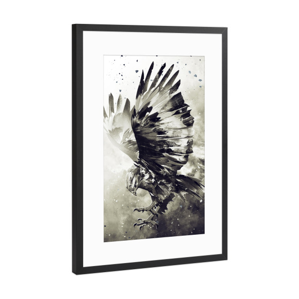 Poster mit Rahmen Schwarz (Metallic) "Eagle (matart)" artboxONE - Tiere,Schwarzweiß - Eagle,Bird,Birds,Animal,Animals,Wild
