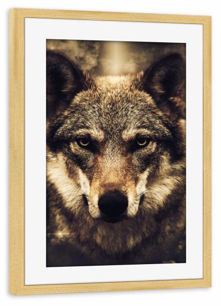 Poster mit Rahmen kiefer "Brown Wolf (matart)" artboxONE - Tiere - Wolf,Wolves,Animal,Animals,Nature,Wild