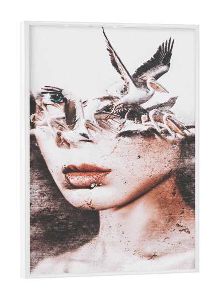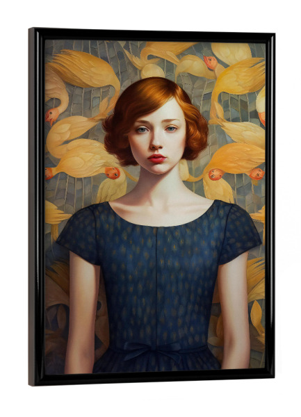 Poster mit schwarzem Rahmen "Tunaboylu - Red haired Girl Birds" artboxONE - Menschen - Portrait,Frau,Feminin,Fashion,Mode,Beauty,Haare,Bird,Animal