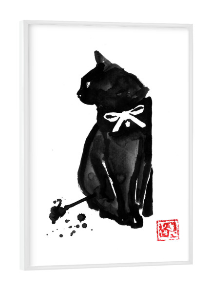 Poster mit weißem Rahmen "Cat with tie" artboxONE - Tiere - Cat,Neko,Chat,Sumie,Japan,Katze,Animal,Tier,Schwarzweiß,Blackandwhite