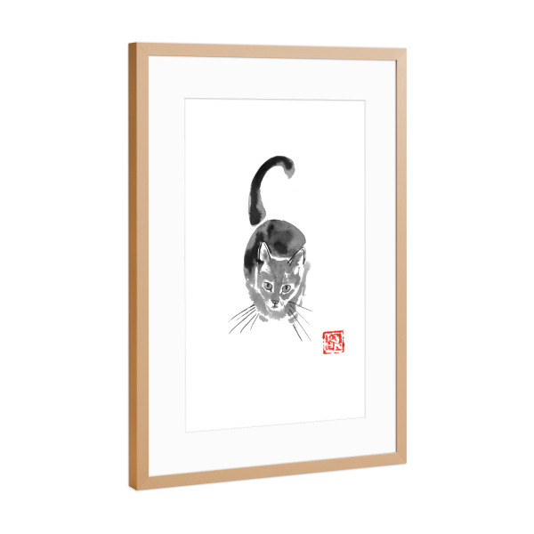 Poster mit Rahmen Kupfer "Asking cat from above" artboxONE - Tiere - Cat,Neko,Sumie,Japan,Schwarzweiß,Blackandwhite,Katze,Animal,Tier,Pet