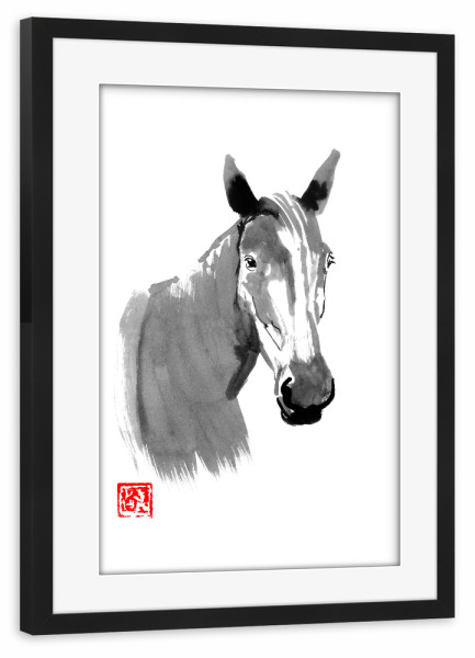 Poster mit Rahmen schwarz "Horse Portrait" artboxONE - Tiere - Horse head,Sumie,Japan,Horse,Pferd,Tier,Animal,Portrait,Schwarzweiß,Blackandwhite