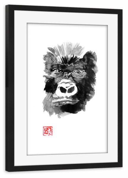 Poster mit Rahmen schwarz "Gorilla face new" artboxONE - Tiere,Schwarzweiß - Gorilla,Sumie,Japan,Animal,Tier,Schwarzweiß,Blackandwhite,Portrait,Monkey