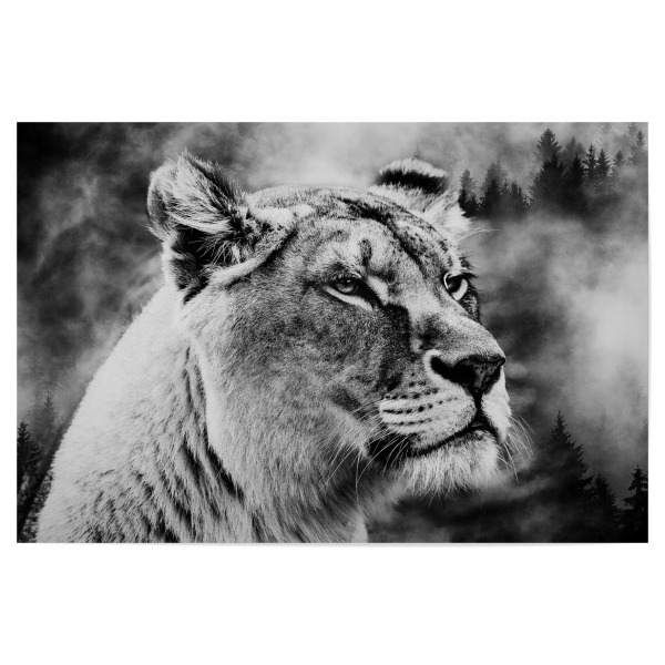 Poster "Löwin Portrait" artboxONE - Natur,Tiere - Lion,Lions,Animal,Nature,Forest,Wild,Wildlife,Löwin,Natur,Wald,Schwarzweiß,Portrait,Blackandwhite