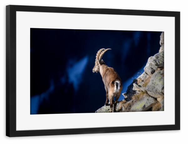 Poster mit Rahmen schwarz "The Lookout" artboxONE - Natur,Tiere - Wildtiere,Natur,Steinbock,Alpen,Nature,Wild,Animal