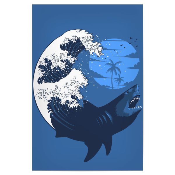 Poster 30x20 cm "Wave Shark" artboxONE - Tiere,Unterwasser - Wave,Tsunami,Shark,Ocean,Summer,Hai,Welle,Meer,Tier,Animal