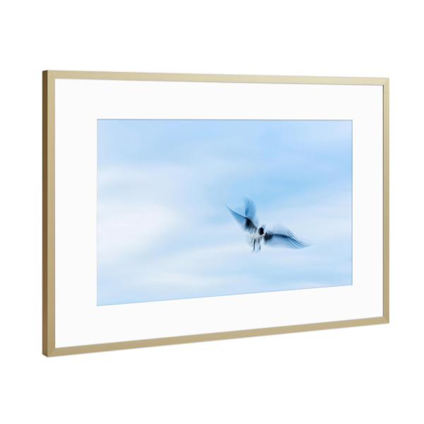 Poster mit Rahmen Gold "Im Flug" artboxONE - Natur,Tiere - Meer,Vogel,Möve,Himmel,Langzeitbelichtung,Bird,Sea,Natur,Nature,Sky,Tier,Animal