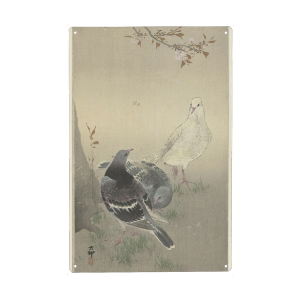 Metall Poster "Drei zahme Tauben" artboxONE - Natur,Tiere - Ohara,Koson,Tier,Animal,Brid,Vogel,Kunst,Malerei,Gemälde,Tauben,Japan - Blechschild