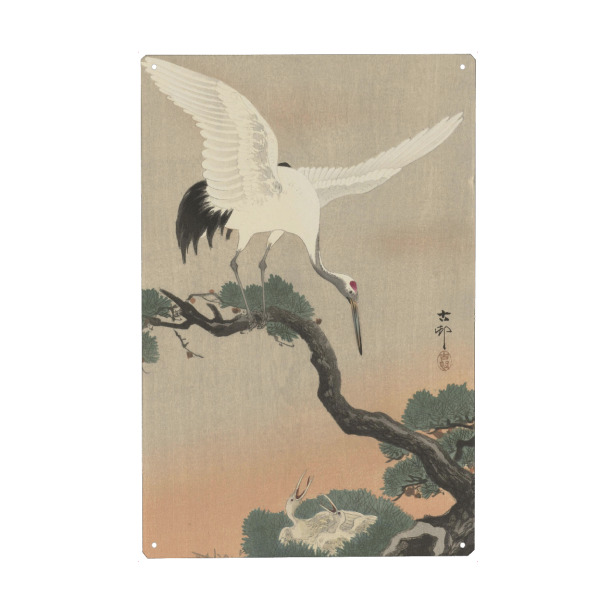 Metall Poster "Japanische Kraniche" artboxONE - Natur,Tiere - Ohara,Koson,Japan,Tier,Animal,Kranich,Kunst,Malerei,Gemälde,Zweig,Ast,Natur