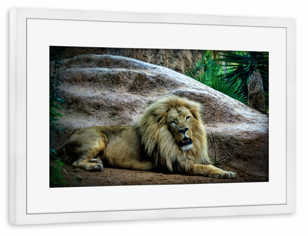 Poster mit Rahmen weiß "Entspannter Löwe" artboxONE - Natur,Reise,Reise / Strand und Meer,Reise / Länder - Löwe,Lion,Tier,Animal,Natur,Nature,Wild