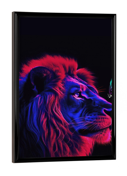 Poster mit schwarzem Rahmen "Lion neon" artboxONE - Natur,Tiere - Lion,Butterfly,Neon,Purple,Modern,Contemporary,Animals,Surrealism
