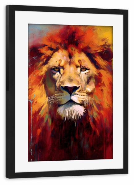 Poster mit Rahmen schwarz "Lion abstract" artboxONE - Natur,Tiere,Abstrakt - Lion,Painting,King of the jungle,King,Wild,Animal,Modern,Vibrant