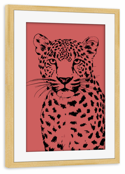 Poster mit Rahmen kiefer "Leopard head red" artboxONE - Natur,Tiere - Leopardo,Animal,Natureza,Moderno,Pop,Arte de linha,Selva,Animal selvagem,Desenho