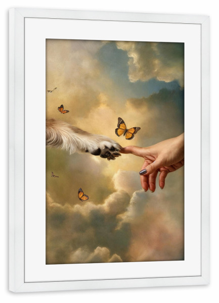 Poster mit Rahmen weiß "Love Dog" artboxONE - Tiere - Paródia,Animal,Bicho de estimação,Cachorro,Surrealismo,Borboleta,Sentimentos,Amor