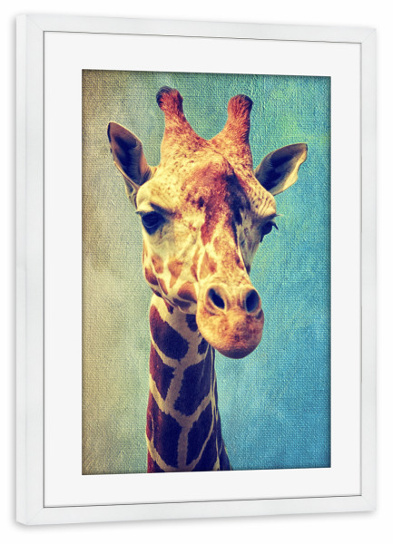 Poster mit Rahmen weiß "Funny Giraffe" artboxONE - Für Kinder,Tiere,Fiktion - Zoo,Animal,Animal portrait,Giraffe,Africa