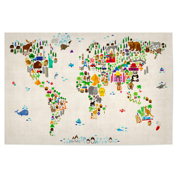 Poster "Animal Map of the World" artboxONE - Für Kinder,Tiere - World map,Animals,Weltkarte,Tiere,Karte,Bunt