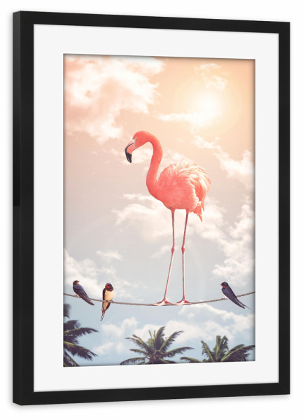 Poster mit Rahmen schwarz "Flamingo & Friends" artboxONE - Natur,Tiere,Abstrakt,Reise / Strand und Meer,Fiktion,Lustig - Flamingo,Animal,Friends,Sky