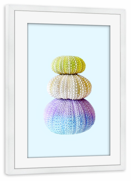 Poster mit Rahmen weiß "Sea Urchin" artboxONE - Natur,Tiere - Sea,Sea urchin,Blue,Grey,Purple,Beach,Sea animal,Sea creature,Minimalist,Seeigel