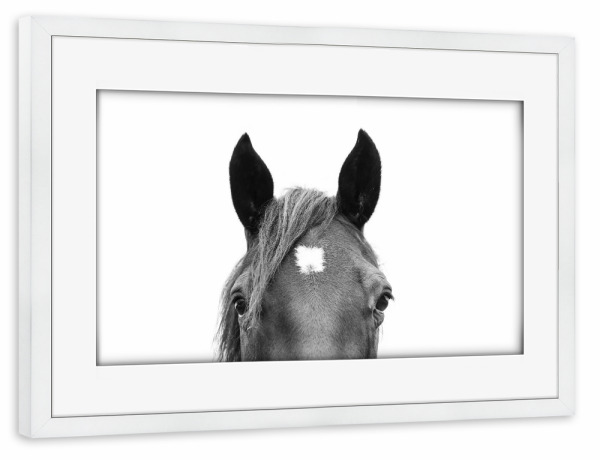Poster mit Rahmen weiß "Peeking Horse" artboxONE - Tiere,Schwarzweiß - Horse,Animal,Peeking