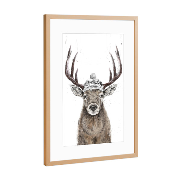 Poster mit Rahmen Kupfer "Let's go outside" artboxONE - Tiere - Deer,Animal,Winter,Drawing,Grunge,Beanie,Hirsch,Mütze
