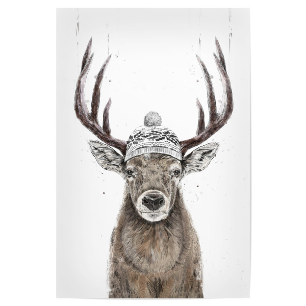 Poster 30x20 cm "Let's go outside" artboxONE - Tiere - Deer,Animal,Winter,Drawing,Grunge,Beanie,Hirsch,Mütze