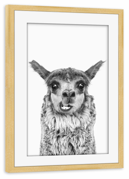 Poster mit Rahmen kiefer "Funny Llama" artboxONE - Tiere,Schwarzweiß - Llama,Animal,Zoo,Funny