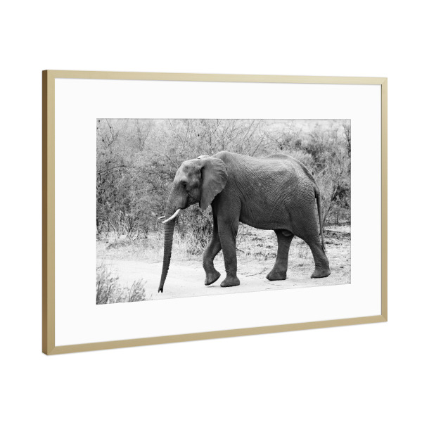 Poster mit Rahmen Gold "Elefant läuft" artboxONE - Tiere,Schwarzweiß,Reise / Afrika - Afrika,Dickhäuter,Tier,Animal,Schwarzweiß,Blackandwhite,Africa