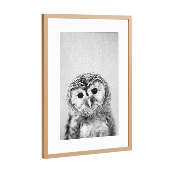 Poster mit Rahmen Kupfer "Baby Owl - Black & White" artboxONE - Tiere,Schwarzweiß - Animal,Baby,Portrait,Owl