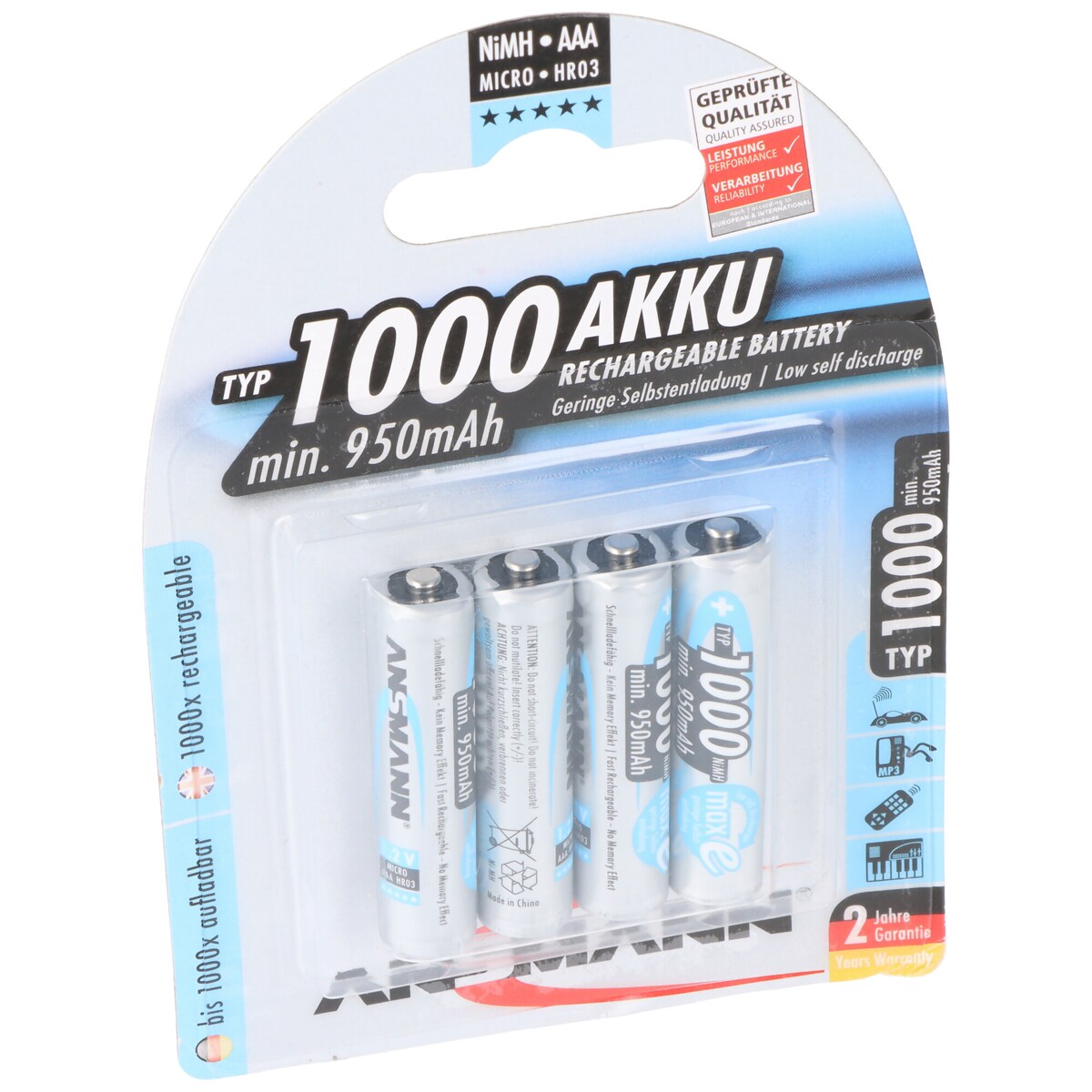 Ansmann NiMH-Akku Typ 1000 AAA Micro 950mAh 4er-Blister