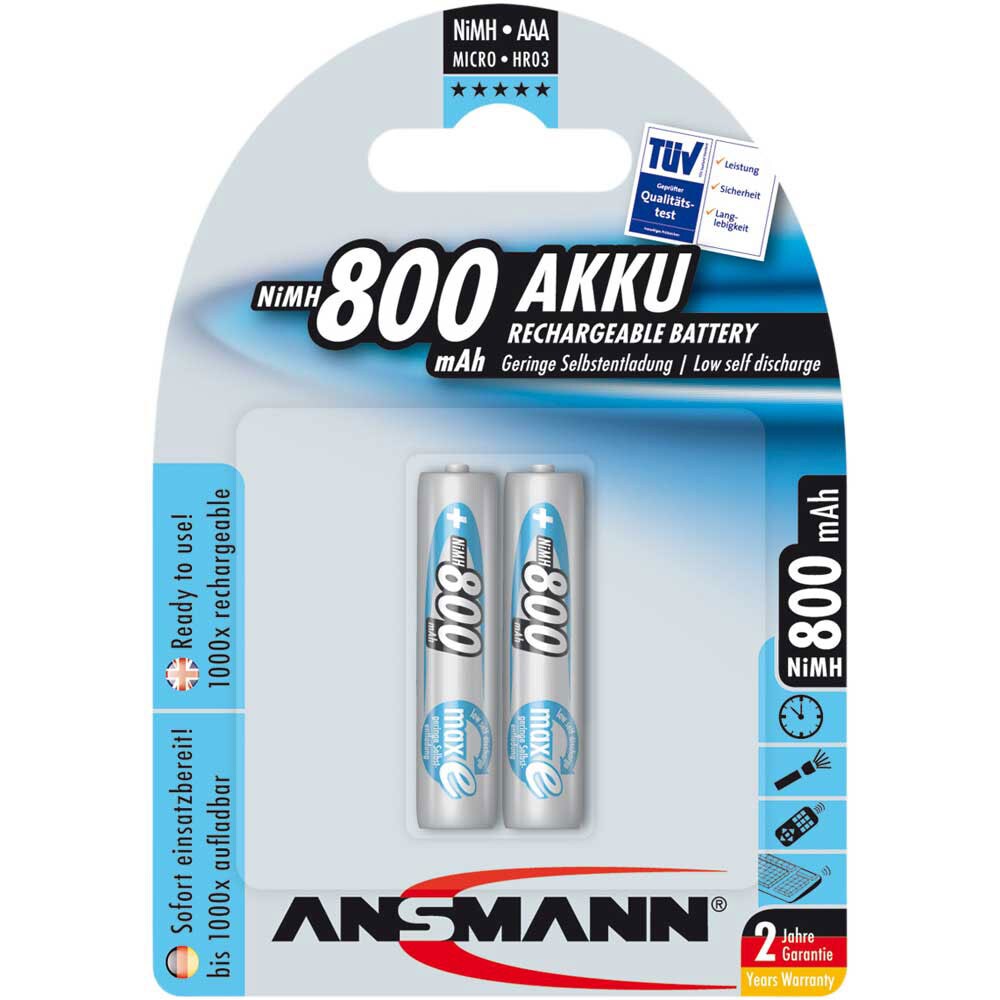 ANSMANN Akku AAA Micro 800 mAh 1,2V NiMH 2 Stück, wiederaufladbar mit maxE
