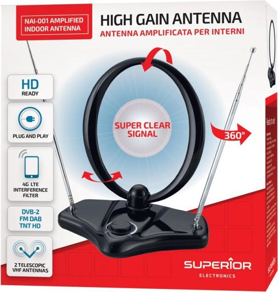 Interne digitale HDTV-Antenne für 4K Fernseher, 80 km Reichweite, VHF, UHF TV Zimmerantenne - SIGNALSURE