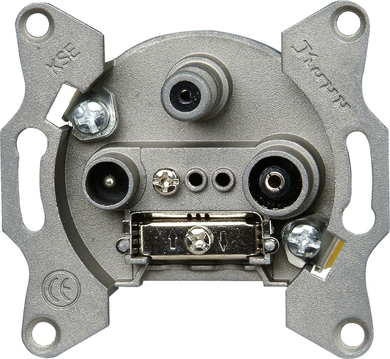Axing Antennensteckdose 2-Port, CATV, DATA, Durchgangsdose 14 dB 5-1800 MHz, unterputz, silber (BSD 967-14X)